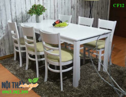 - Bàn 6 ghế: Dài 160 x Rộng 80 x Cao 75cm