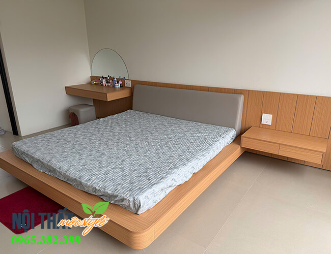 Giường ngủ gỗ công nghiệp có nệm đầu giường êm ái
